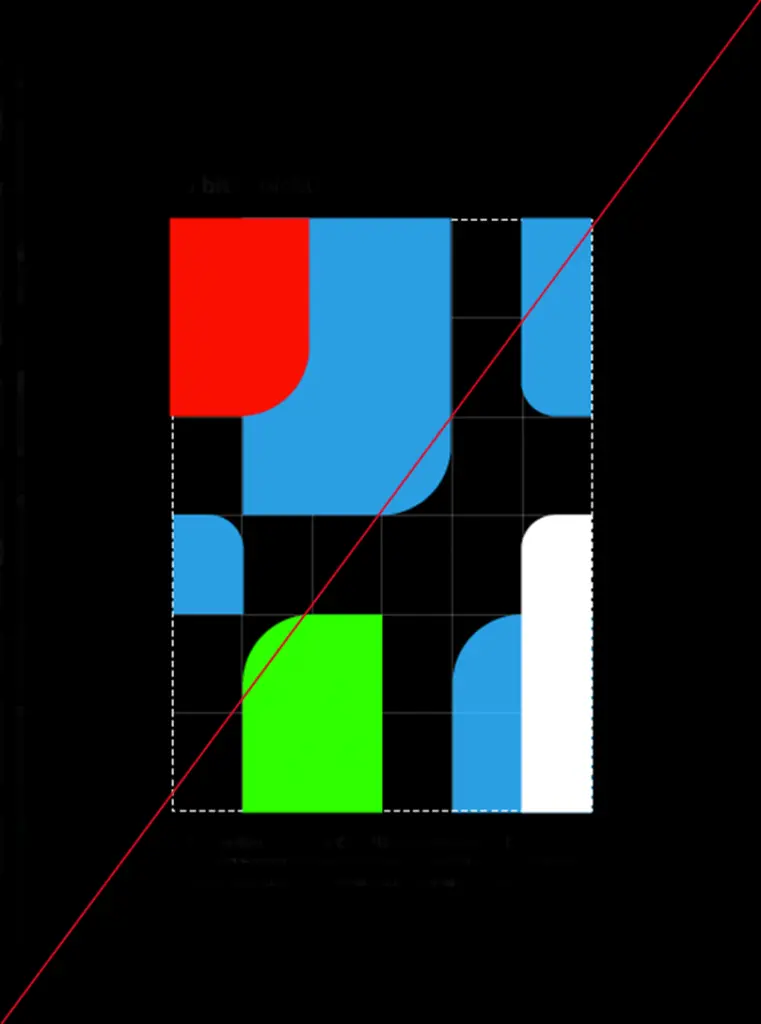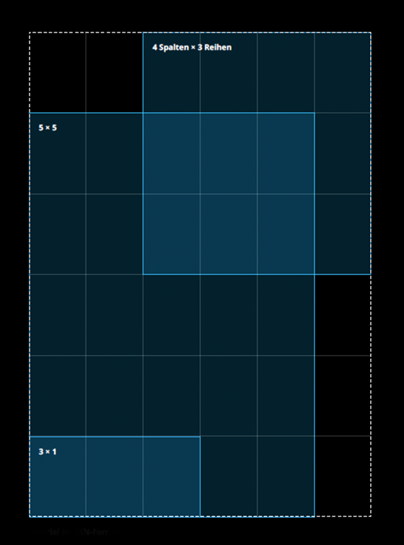 Auf einem Gestaltungsraster wird die Fläche des Gestaltungselements angelegt. Hierbei kann die Fläche z.B. in 6 Spalten und 6 Reihen unterteilt werden, um Variationen von harmonischen Aufteilungen zu definieren.