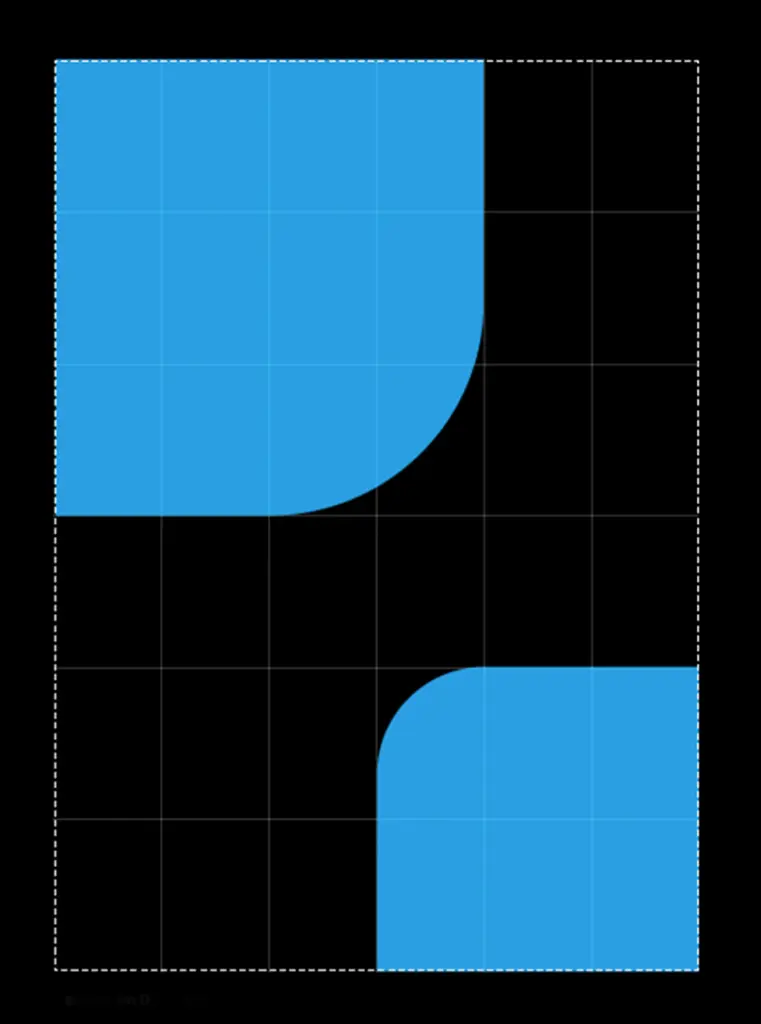 Das Gestaltungselement hat eine abgerundete Ecke. Ihr Radius orientiert sich an der Spalten-Breite des Rasters.