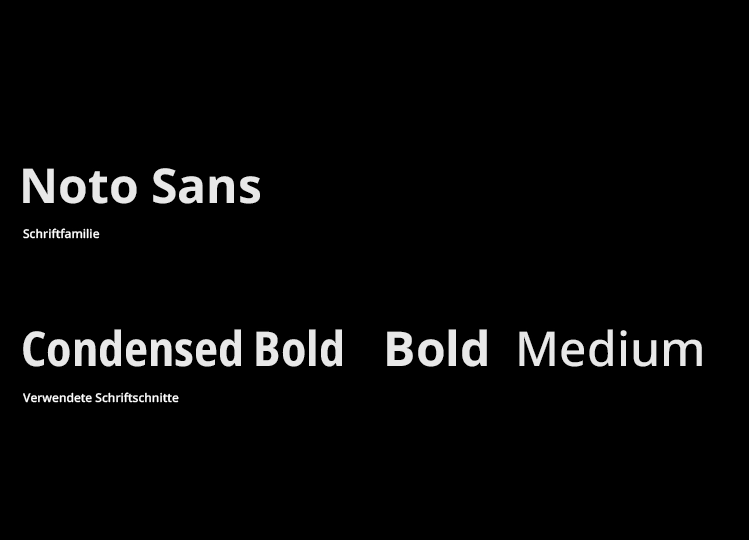 Schriftfamilie: Noto Sans.Möglichst reduzierter Einsatz der Schnitte.