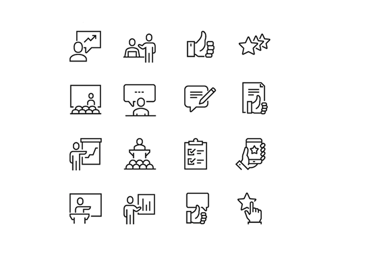 Da das neue Gestaltungsraster aus vielen Flächen besteht, sollen die Icons einen Kontrast bilden.Die Icons im Outline-Stil passen so zu den Icons im Logo und lockern das Flächendesign auf.