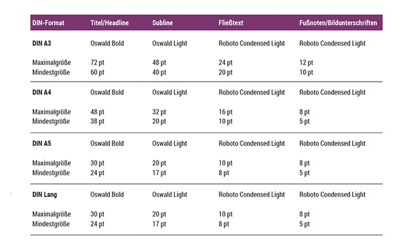 Diese Tabelle dient als Beispiel und Orientierungshilfe für Schriftgrößen bei den gängigsten DIN-Formaten